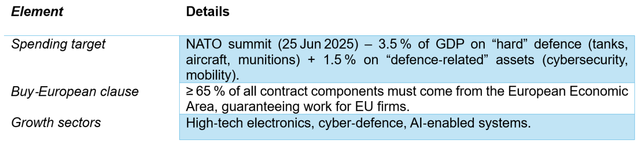 EU sovereignty hinges on a robust economy, integrated security‑defence, and independent supply chains. These pillars generate sizable investment opportunities in green energy, high‑tech manufacturing, cyber‑defence, and critical‑material logistics. Partnering with specialists helps pinpoint the firms best positioned to benefit. With clear insights, investors can confidently navigate sovereignty‑driven deals.